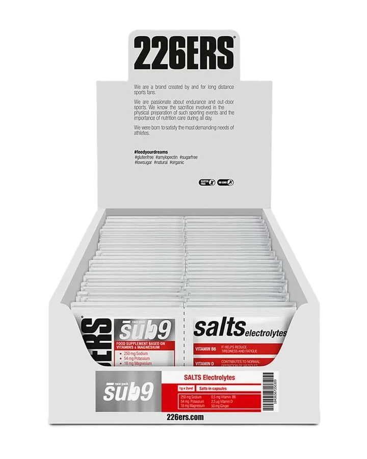 SUB9 SALTS ELECTROLYTES is an evolution of SALTS ELECTROLYTES designed for continuous intake during more extensive exercise. It is a food supplement based on ginger, vitamins and minerals.