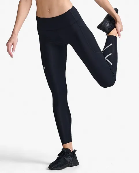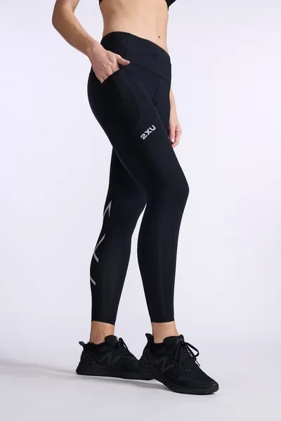 The 2XU Aero Mid-Rise Women's Compression Tights are designed for optimal performance and comfort during intensive workouts. These tights utilize HeiQ Smart Temp technology to regulate temperature and maintain comfort during intense activities. The mid-rise power mesh waistband enhances core stability and provides a secure, sculpting fit that moves with your body. Fabricated from lightweight PWX fabric, the tights offer circular 360-degree stretch, allowing for maximum flexibility and muscle support in all directions. They are quick drying to reduce moisture build-up and squat proof to ensure coverage during all exercises. Flatlock seams reduce chafing and skin irritation, enhancing the comfort factor. Side pockets conveniently hold essentials, and reflective trims improve visibility in low-light conditions, making these tights suitable for both daytime and after-dark workouts.