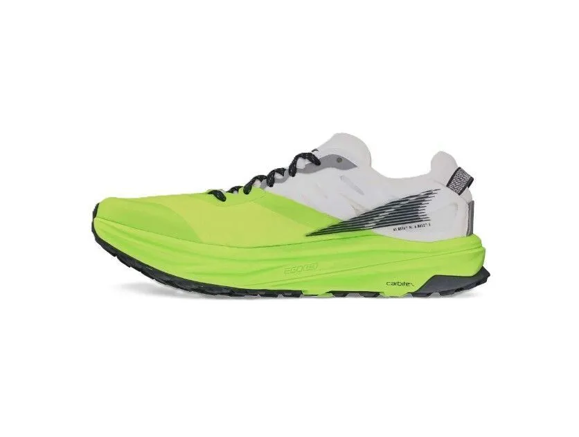 Say Bonjour to the speediest trail shoe to date! With a full-length carbon fiber plate, upgraded midsole, and sticky outsole, it’s ready for fast technical terrain. Toe the starting line of your next trail ultra or set out on all-day up and downs with confidence and speed. It’s got many of the original Mont Blanc features, but we added a full-length Carbitex Monoflex carbon plate for extra propulsion, underfoot protection, and stability on all terrain. Crafted with a lightweight and responsive midsole with rim and core construction. Snag some comfort with Altra EGO MAX in the rim and get enhanced race-day performance with Altra EGO PRO in the core. With Vibram Litebase to reduce outsole weight and Vibram Megagrip for unparalleled grip on both wet and dry surfaces, you’ve got help sticking it to any trail. Featuring a roomy toe box with plenty of space for your toes to move freely, a secure midfoot, and zero drop, so you can move naturally. Who said road shoes get all the speed? Send it on the trail with the Mont Blanc Carbon!