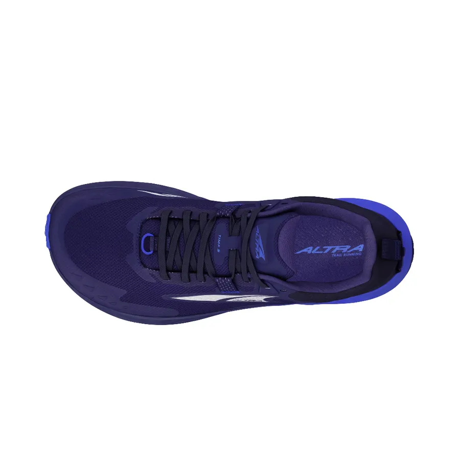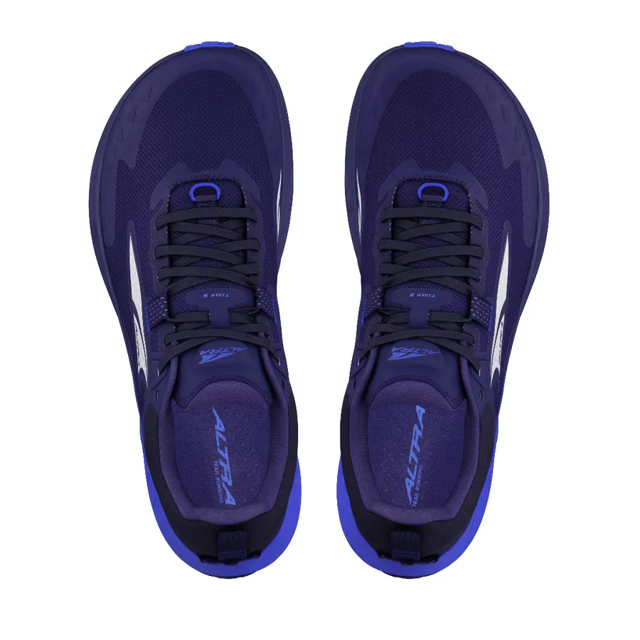 The Altra Timp 5 Men's Shoes are crafted for trail runners seeking a blend of comfort, lightness, and superior grip for long-distance runs and hikes. The Vibram Megagrip outsole ensures exceptional traction on both wet and dry surfaces, making it ideal for diverse terrains. The Altra EGO MAX midsole provides a responsive and durable cushioning system, designed to offer a luxurious feel with extra bounce and enhanced durability. The Quick-Dry Air Mesh upper contributes to the shoe's breathability and comfort, keeping your feet cool and dry. With a 0mm heel-to-toe drop, these shoes promote a natural running posture, encouraging proper, low-impact form throughout your trail run. The high cushioning and 29mm stack height offer ample protection without compromising ground feel. Additionally, the FootShape toe box allows your toes to spread naturally for more stability and a powerful toe-off, maximizing running performance.