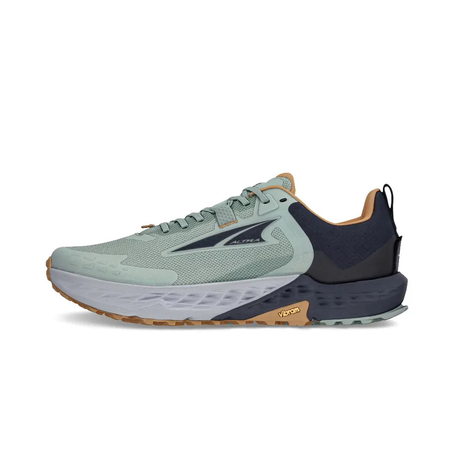 The Altra Timp 5 Men's Shoes are crafted for trail runners seeking a blend of comfort, lightness, and superior grip for long-distance runs and hikes. The Vibram Megagrip outsole ensures exceptional traction on both wet and dry surfaces, making it ideal for diverse terrains. The Altra EGO MAX midsole provides a responsive and durable cushioning system, designed to offer a luxurious feel with extra bounce and enhanced durability. The Quick-Dry Air Mesh upper contributes to the shoe's breathability and comfort, keeping your feet cool and dry. With a 0mm heel-to-toe drop, these shoes promote a natural running posture, encouraging proper, low-impact form throughout your trail run. The high cushioning and 29mm stack height offer ample protection without compromising ground feel. Additionally, the FootShape toe box allows your toes to spread naturally for more stability and a powerful toe-off, maximizing running performance.