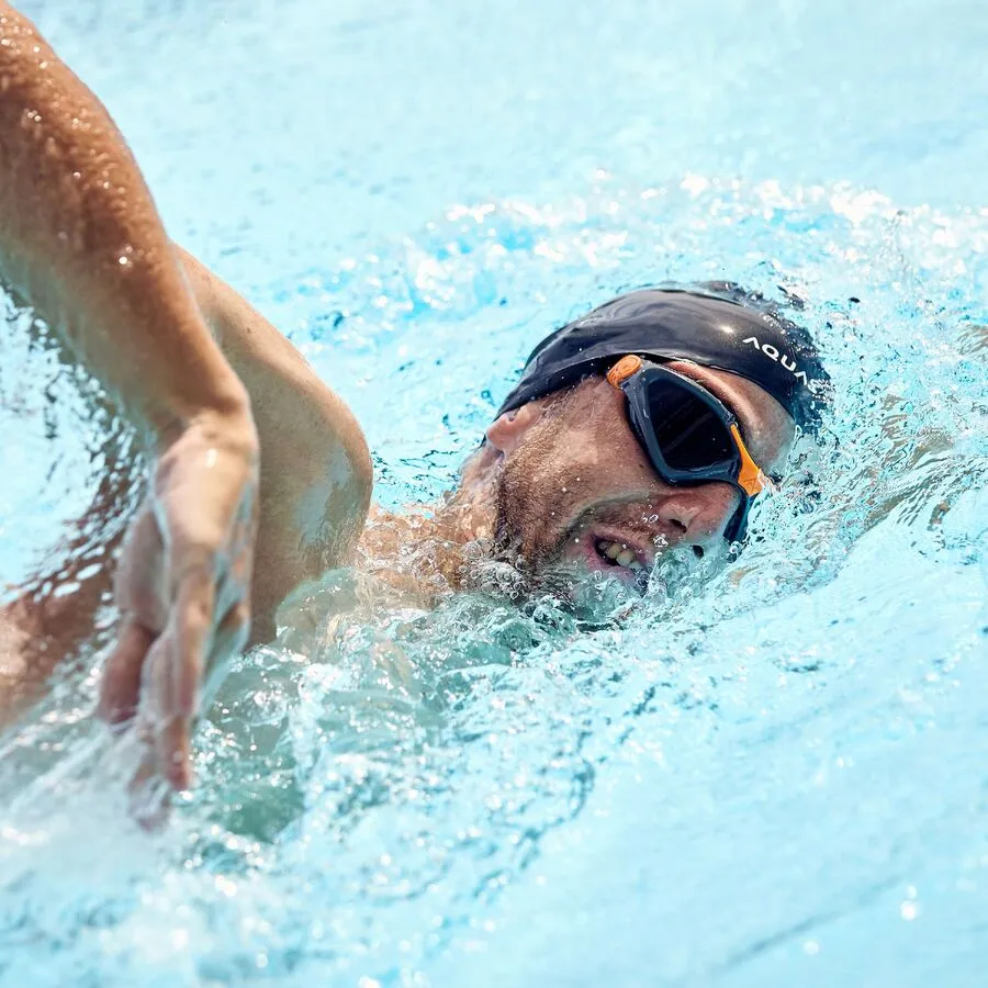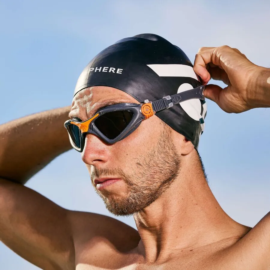 The new Aqua Sphere Kayenne Goggles in grey and orange offer a superior, streamlined fit as well as distortion-free vision, to make you exceed on race day.
