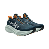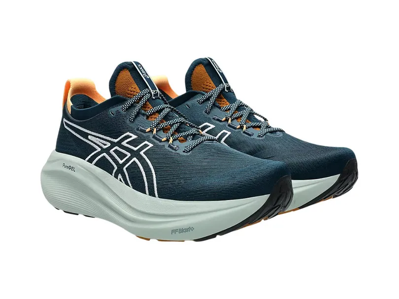 The GEL-NIMBUS 27 TR shoe's soft cushioning properties help you feel like you're landing on clouds. This design is revamped to help create a softer and smoother running experience.