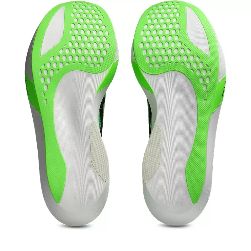 The ASICS Metaspeed Sky Tokyo Ekiden is purpose-built for stride-style runners who generate speed by lengthening every step. This featherlight carbon-plated racer fuses advanced cushioning and propulsion technologies into one seamless ride. The MOTION WRAP 3.0 upper locks you in with breathable comfort, while a dual-density midsole stacks FF TURBO PLUS and FF LEAP cushioning to balance stability with spring-loaded energy return. A higher-placed carbon plate works with the increased foam volume and curved sole design to magnify propulsion, delivering powerful toe-offs and smoother transitions over any distance. ASICSGRIP outsole rubber ensures dependable traction on paved roads, even at race pace.