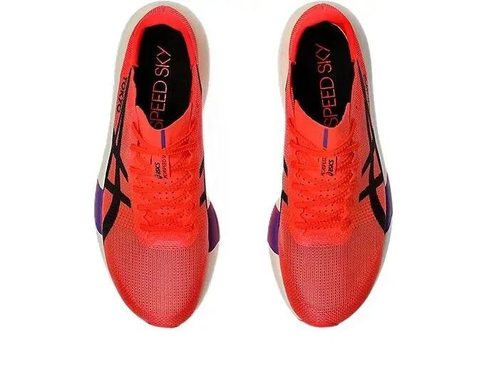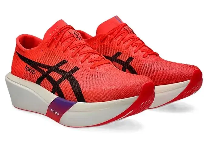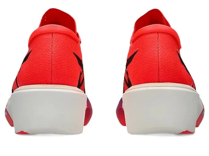 The ASICS Metaspeed Sky 3 Tokyo is purpose-built for stride-style runners who generate speed by lengthening every step. This featherlight carbon-plated racer fuses advanced cushioning and propulsion technologies into one seamless ride. The MOTION WRAP 3.0 upper locks you in with breathable comfort, while a dual-density midsole stacks FF TURBO PLUS and FF LEAP cushioning to balance stability with spring-loaded energy return. A higher-placed carbon plate works with the increased foam volume and curved sole design to magnify propulsion, delivering powerful toe-offs and smoother transitions over any distance. ASICSGRIP outsole rubber ensures dependable traction on paved roads, even at race pace.
