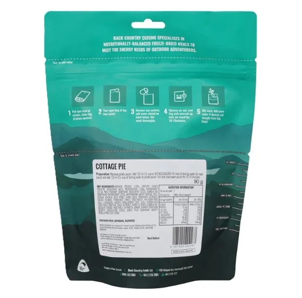 This meal is light to carry and provides tasty, fast nourishing food for adventure with a satisfying mix of freeze dried savoury mince and vegetables with a potato topping. Gluten free. Halal certified.