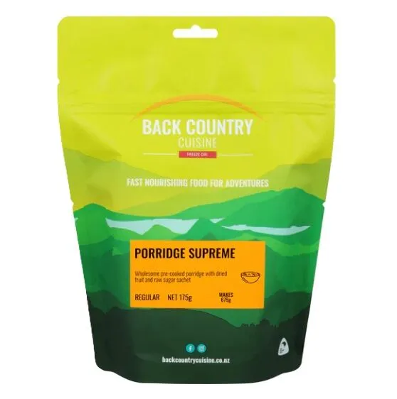 Wholesome pre-cooked porridge with dried fruit and raw sugar sachet