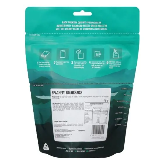 Freeze dried beef mince with tomato in a savoury sauce, served with noodles