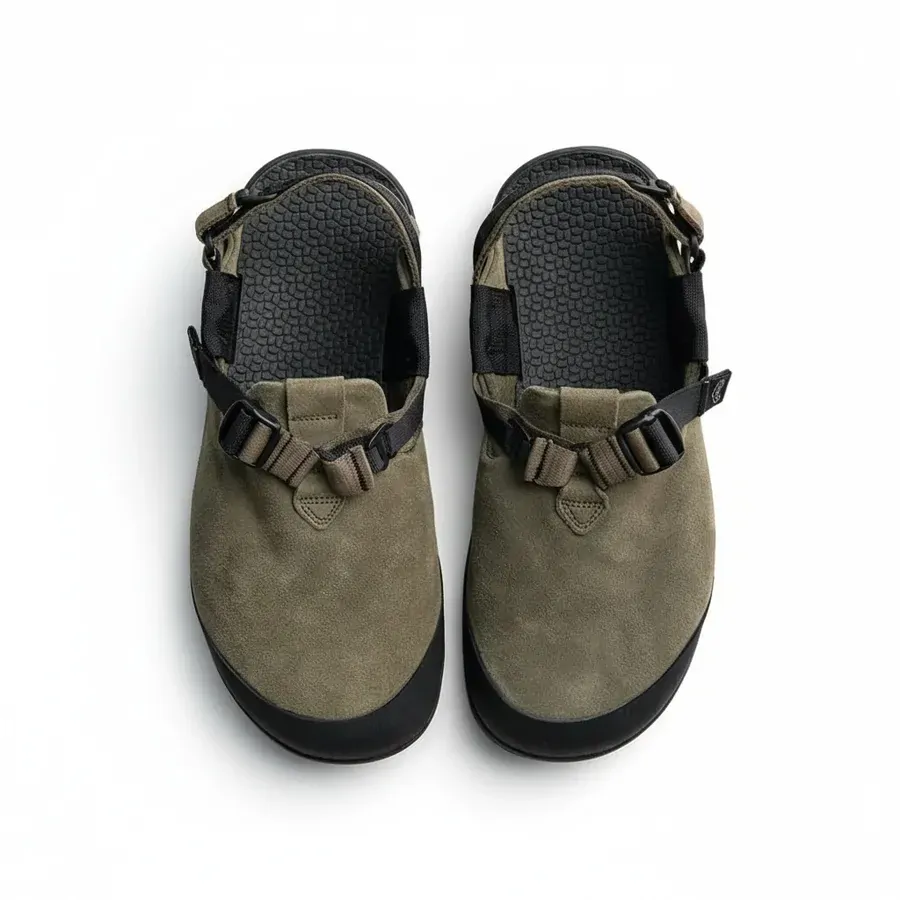 Meet the Bedrock Mountain Clog Suede Leather Unisex Sandals, built from the ground up for rugged exploration and natural movement. Crafted with a premium leather suede upper, this unisex clog combines outdoor durability with everyday comfort. The soft polyester spacer mesh lining enhances breathability and interior comfort, while the anatomically moulded PU footbed ensures superior underfoot cushioning and delivers long-lasting cushioning on long treks and urban missions alike. Featuring Bedrock’s patented Mountain Clog design with a 3-point adjustable strap system, you can fine-tune your fit in seconds and a climbing rubber toe cap, this clog offers a secure, customisable fit and closed-toe protection for all-season wear. Finished with a Vibram Megagrip outsole, it guarantees traction and confidence on any surface, all while maintaining a zero drop for a natural stride. Built for comfort. Designed for adventure. As part of the 1% for the Planet initiative, this is sustainability, style, and performance all in one. Inspired by nature.