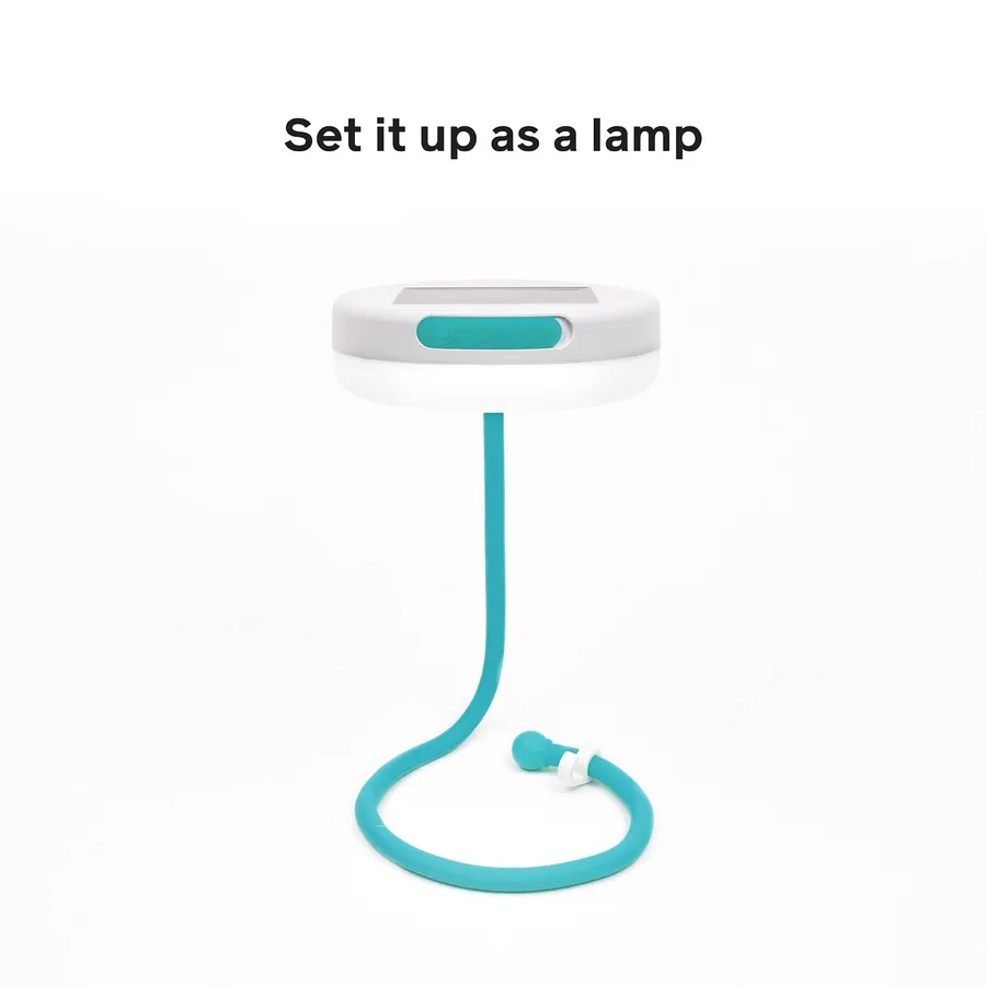 Light however, and wherever, you need Task light, emergency light, overhead light, tabletop lamp, Solar FlexLight does it all. With its adjustable 14 inch silicone arm, and 3 cool white LEDs shining through a matte finish, you can direct light however you choose for up to 12 hours on a single charge. Whether you set it up as a lamp, hang it from above, or attach it to your belt, Solar FlexLight has you covered.