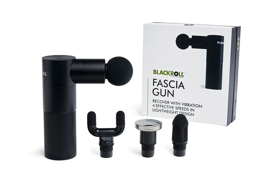 The BLACKROLL Fascia Massage Gun is an advanced tool designed for enhancing muscle recovery, activation, and relaxation through vibration technology. This compact and sturdy device is equipped with a long-lasting rechargeable battery, providing up to 15 hours of operation on a single charge. It features a powerful stall force and a broad frequency range adjustable from 1200 to 3200 revolutions per minute (RPM), allowing for a variety of treatment intensities from gentle relaxation to deep tissue activation. The massage gun operates quietly and comes with four different attachments, making it versatile for different muscle groups and massage needs. Its lightweight and robust design make it ideal for both home and travel use.