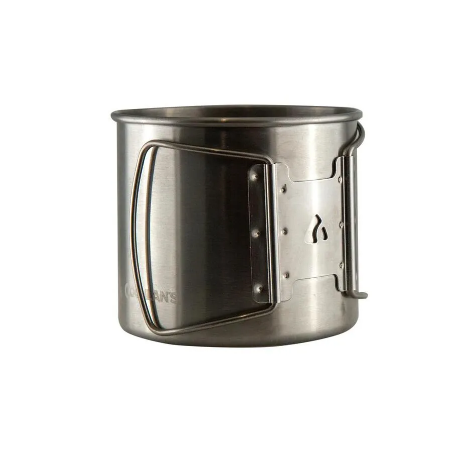 Coghlan's Camp Mug holds 600mL (21 oz.) of your favourite beverage, soup, or oatmeal, making it versatile and practical both at the campground and on the trail. Featuring volume measurement markings in 150mL (5 oz.) increments, the Camp Mug makes it easy to know how much water to boil for your dehydrated meal or ensure you've mixed the perfect campfire beverage. The wide-mouth design makes drinking and eating out of the mug easy. Featuring folding handles, you can easily stow the Camp Mug in your backpack or camping kit or use a carabiner to attach it to the outside of your pack. Made of lightweight stainless steel, Coghlan's Camp Mug weighs in at only 6.4 oz.