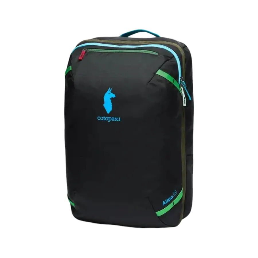 The Cotopaxi Allpa 35L Travel Pack Del Día Dark isn’t just your on-the-go storage solution for your next adventure - it’s a travel companion that inspires confidence in your journey. The Del Dia Dark model is crafted from repurposed materials - giving you a one-of-a-kind look that reflects your individuality - so be prepared for your unique pack to differ from the images shown. Recycled black fabric is used in the main body, complete with a vibrant logo and colourful style details.
