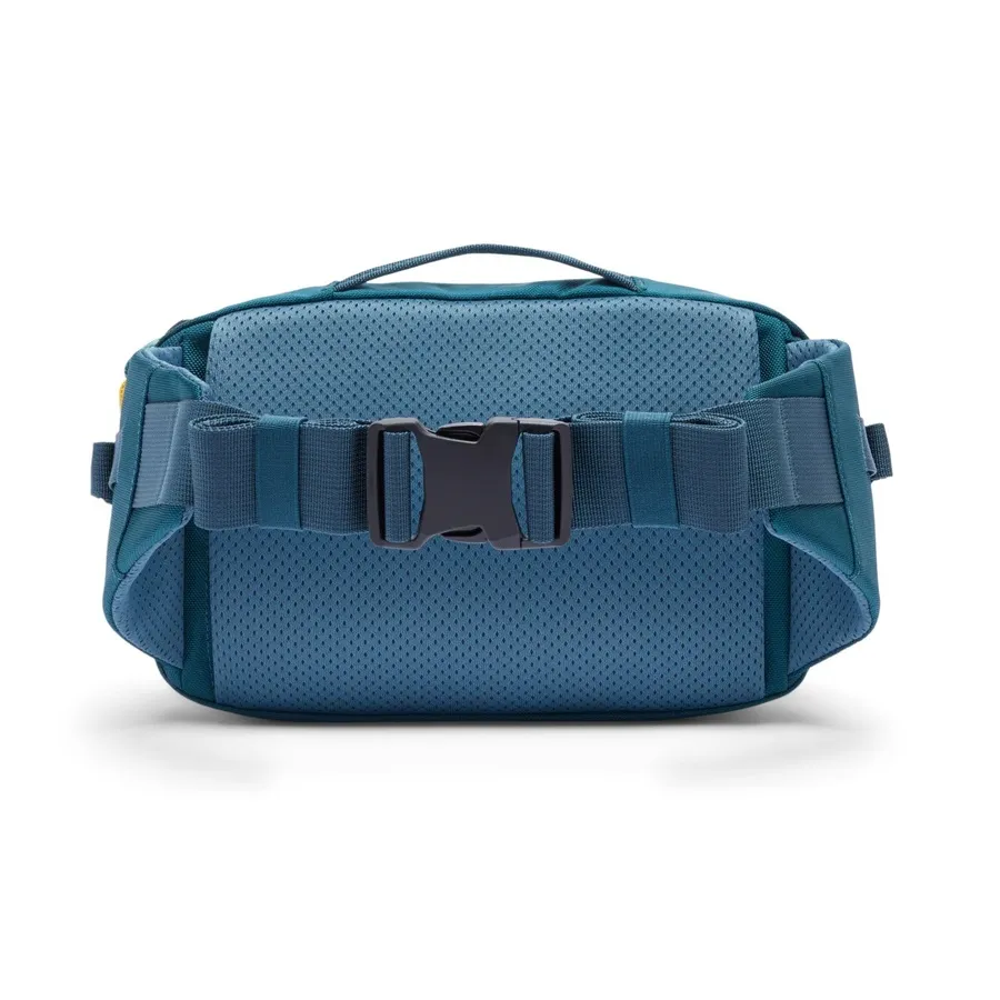The Cotopaxi Allpa X 3L Waistbelt is an ideal hands-free travel companion, perfect for adventures in the city, on a trail, or during international journeys. Crafted from 100% recycled fabrics, including TPU-coated nylon and ripstop polyester, this waistbelt ensures durability and sustainability. It features a front compartment with butterfly opening and a large main compartment with a large opening, both secured with two-way zippers. The side compression straps help to minimise the bulk when it's less filled, while its compact design allows it to fit inside the top pocket of Allpa 35L and 42L travel packs. Lightweight and functional, the waistbelt ensures a comfortable fit with its adjustable strap, making it perfect for active explorers or urban adventurers who need to keep their hands free.