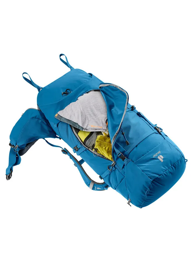 The Deuter Aircontact Core 60+10 Unisex Pack is a high-performance backpack designed to deliver exceptional comfort and load management for a wide range of outdoor adventures. This pack features the innovative Aircontact System, which includes Air Spacer mesh and a wide ventilation channel to ensure optimal back ventilation and reduced perspiration. It incorporates a Y-frame design for excellent load transfer and control, coupled with the VariSlide adjustable back length and VariFlex hip fins for a customizable fit. ActiveFit shoulder straps and mobile hip fins further enhance mobility and comfort. The pack is designed with practicality in mind, featuring a J-shaped front zipper for easy access to items at the bottom of the bag. For those needing additional storage, it includes detachable 3-litre hip fin pockets and a 1.5-litre bottle holster, making hydration convenient on the move.