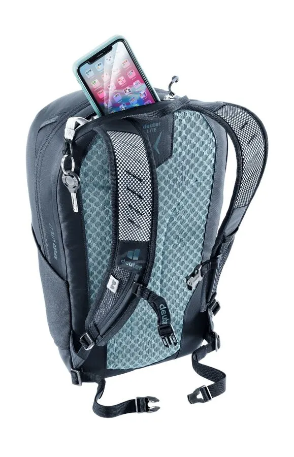 Move fast & light through the mountains – as well as comfortably – thanks to the deuter Lite back system, ergonomic, perforated shoulder straps, a detachable waist belt, and 2-way adjustable sternum strap. All your gear, hydration, and food can be divided between the main compartment and two side pockets. And it has docking loops for a helmet holder on the front, if needed.