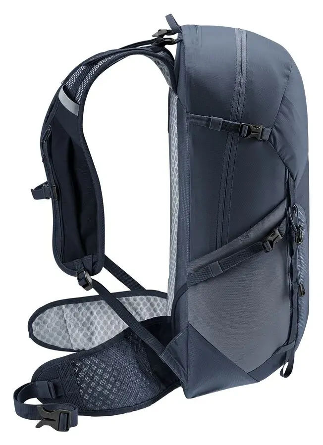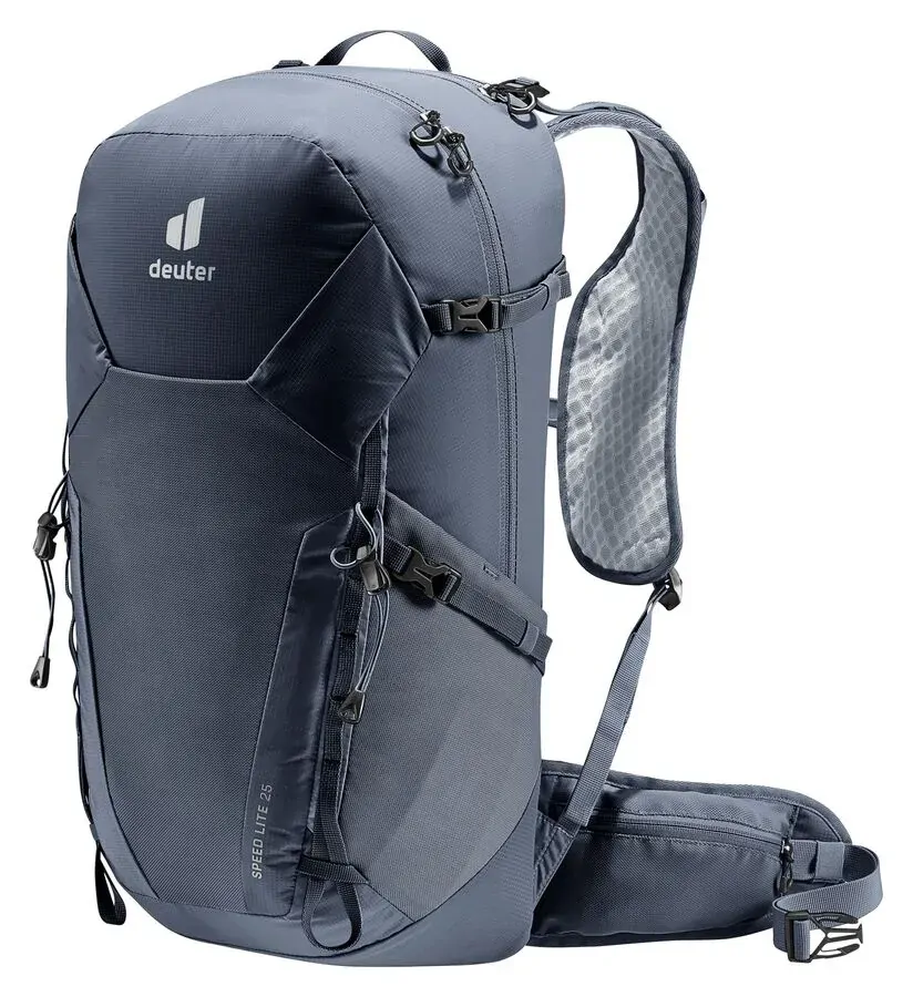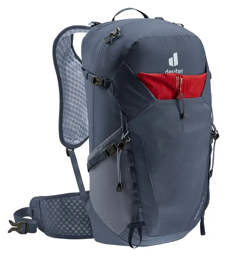 The Deuter Speed Lite 25 is designed to be the ultimate companion for high-energy pursuits such as fast-paced hiking and trail running. This backpack stands out for being exceptionally light, the lightest Deuter hiking series, built with a commitment to sustainability using 100% recycled, bluesign certified body fabric. The pack features Deuter’s innovative Lite back system, which combines a light, soft back padding with a ventilated 3D mesh cover for breathability and comfort. The vest-style, perforated shoulder straps and supple hip fins ensure a secure and comfortable fit that adjusts to your body, while the precision-adjustable sternum strap and side compression straps enhance load stability and distribution. Its sleek design and functional layout make it ideal not only for hiking but also for climbing and traveling in varying degrees.