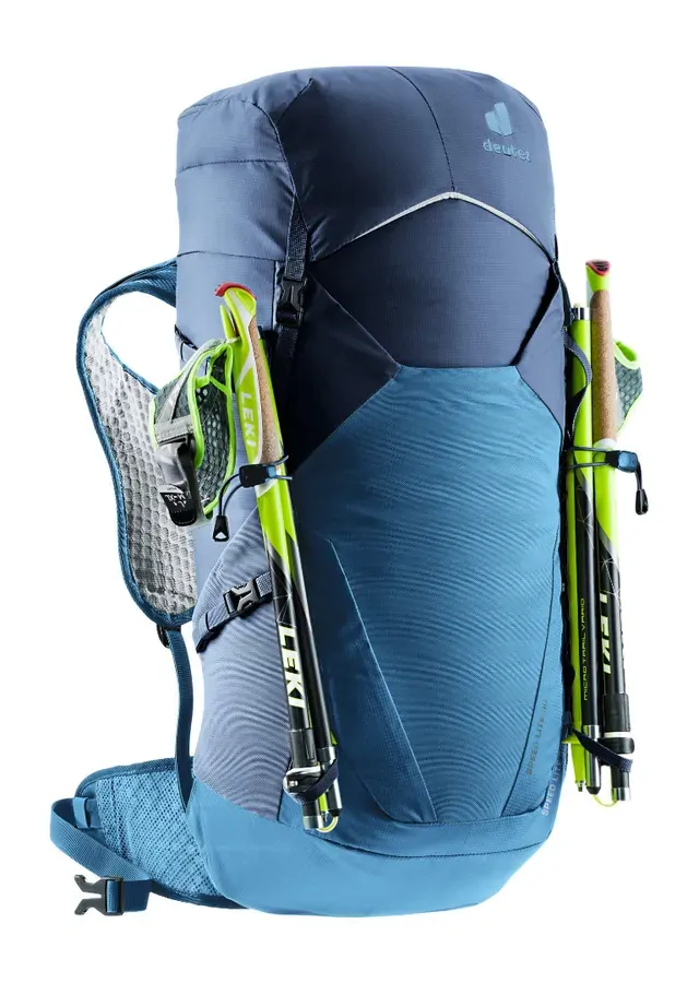 The Deuter Speed Lite 30 Unisex Pack is a high-performance hiking backpack designed for speed, efficiency, and comfort on the trail. As part of Deuter’s lightest hiking series, it weighs in at just 880 grams, making it an ideal choice for fast-paced day hikes, alpine adventures, or lightweight trekking. This pack combines agility with thoughtful design, featuring a flexible Delrin U-frame and Lite System with the flexible V-frame that provide excellent load transfer to the hip fins, reducing fatigue over long distances. Comfort is prioritised with ergonomically padded shoulder straps, load adjustment straps, and a 2-way adjustable sternum strap, ensuring a secure, customisable fit for any user. With a wealth of smart storage options and eco-conscious materials, the Speed Lite 30 excels in functionality without compromising sustainability.
