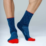 A very comfortable snug sock that is soft and firm around the whole foot. The leg of the sock has a double layer which has been folded over to make it perfect for cooler weather, hiking, or a more even grip to the leg due to not having a cuff. Personally, I really like these socks, partly for the simple but colourful design, but also for the fit around the leg which means the socks never fall down, cut off circulation or leave tight marks.