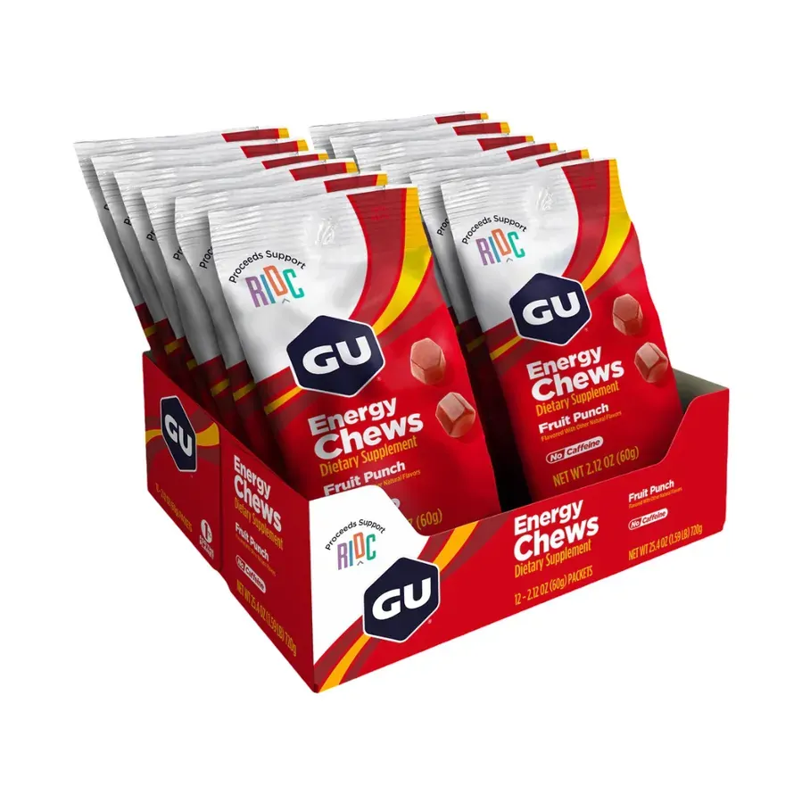 Avoid bonking while exercising with GU Energy Mini Chews: small, delicious and packed full of energy-dense calories in a portable packet to help sustain energy demands of long duration activities. These chews contain all the benefits of GU Energy Gel, just in a chewable form for when you want to sink your teeth into something.
