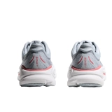 The HOKA Bondi 9 Women's Shoes are engineered to provide exceptional cushioning and support for daily running and walking. This latest iteration features an increased stack height and a premium supercritical foam midsole, delivering a soft, resilient ride synonymous with the Bondi series. The structured knit upper offers zonal breathability for enhanced comfort, while the 3D moulded collar ensures a secure fit around the ankle. Reflective details enhance visibility in low-light conditions, and the extended heel pull allows for easy on and off. The shoe's MetaRocker technology promotes smooth transitions during each stride, and the Active Foot Frame cradles the foot for inherent stability. The Durabrasion rubber outsole is designed to withstand high-wear zones, ensuring durability over time.