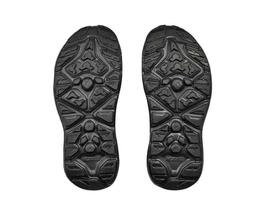 The HOKA Hopara 2 Women's Shoes are distinguished by their 100% recycled knit upper with water repellency treatment, ensuring feet stay dry and comfortable in damp conditions. The incorporation of 100% recycled Cordura mesh overlays adds durability while allowing for optimal water drainage. An adjustable heel strap and quick-toggle lace system provide a customizable and secure fit, ensuring the shoes stay in place during rigorous activities. The sticky rubber outsole is engineered for exceptional grip in both wet and dry conditions, enhancing safety and performance. Additional features like the ripstop overlay and durable rubber toe cap offer extra protection against abrasions and impacts. The 30% sugarcane Ethylene-Vinyl Acetate (EVA) topsole and midsole contribute to the shoe's balanced cushioning, offering a comfortable and responsive feel while promoting environmental sustainability.