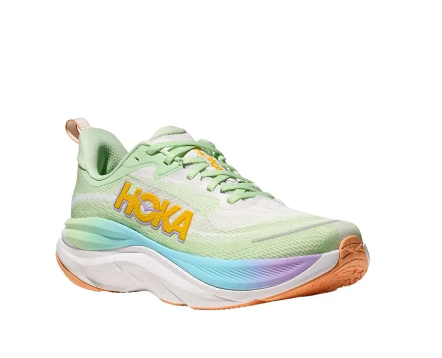 Glide like the wind with the HOKA Skyflow Mens Shoes, where lightweight comfort meets daily training power. Built as a daily trainer for neutral runners, it combines supercritical SCF EVA foam with a Heel-focused Active Foot Frame for plush cushioning and natural stability. The asymmetrical midsole design and Early Stage MetaRocker work together to encourage a smooth heel-to-toe ride, helping you maintain rhythm across daily kilometres. With a breathable creel jacquard upper, 360° reflectivity, and a dual-gusseted tongue for locked-in comfort, the Skyflow is your go-to for everyday training—easy on the feet and tough on performance.