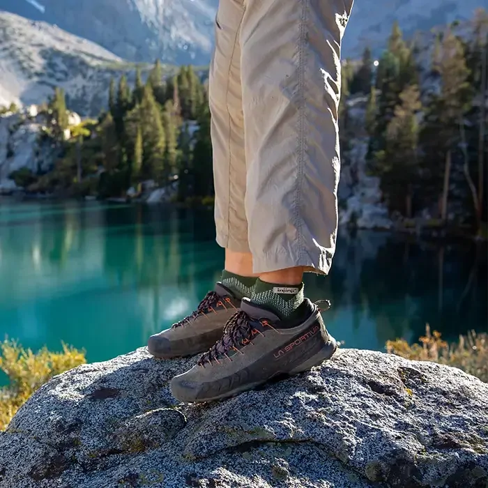 Designed for outdoor activities, these midweight mini crew toesocks feature Merino wool construction, a five-toe design, moisture management, and anti-odour properties for comfort and performance.