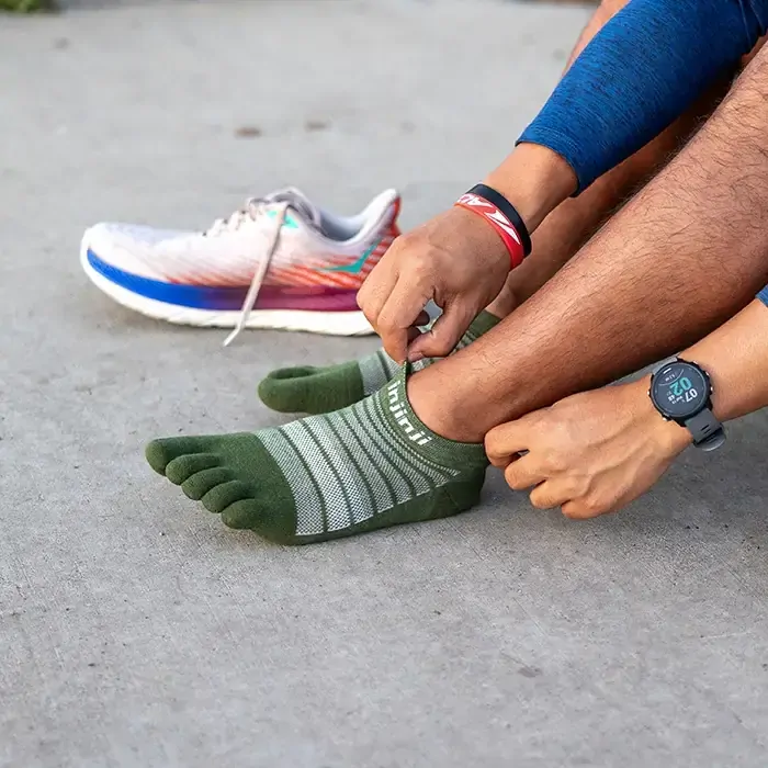 The ultra-thin, Merino wool toesocks offer breathability, moisture-wicking, and blister prevention, making them ideal for running in various conditions.