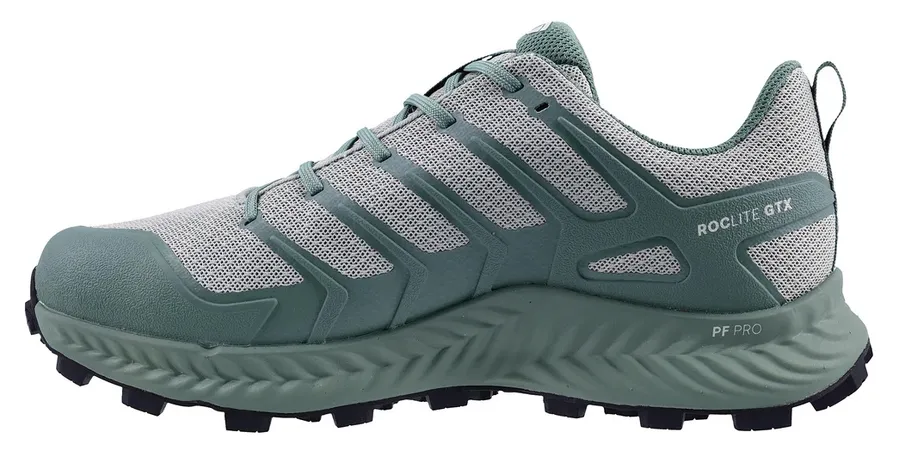 The Roclite GTX Women's Hiking Shoe delivers peak performance on variable trails with lightweight, waterproof protection. Designed with a precision anatomical fit, it locks in the heel while allowing natural toe splay for long-distance comfort. The aggressive 6mm STICKYGRIP lugs offer superior grip on both rocky and muddy trails, inspired by the traction of a mountain goat’s hoof. A GORE-TEX membrane ensures year-round waterproofing, while the POWERFLOW PRO midsole provides responsive cushioning without sacrificing ground feel. Featuring a META-PLATE rock guard and BOOMERANG footbed for added protection and energy return, the Roclite GTX is built to go the distance, light, rugged, and trail-ready.