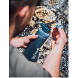A soft flask with integrated water filtration technology, this hydration system with 2-stage filter empowers you to fill from streams, taps or other sources and drink with confidence. It filters out protozoa, bacteria, cysts and sediments while ensuring a fresh taste with the activated carbon pad.