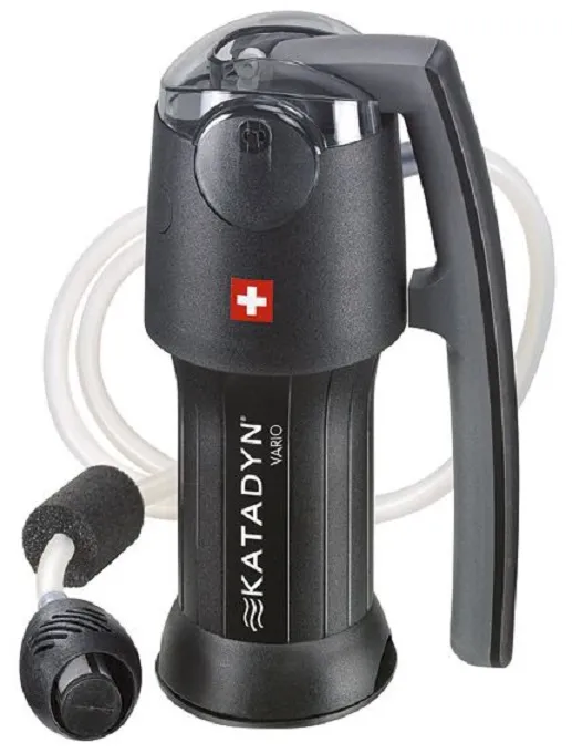 The Katadyn Vario is a water filter with three filters to eliminate bacteria, protozoa, cysts, alga, spores and sediments from clear or dirty water, PLUS reduce chemicals and improve taste and odour.