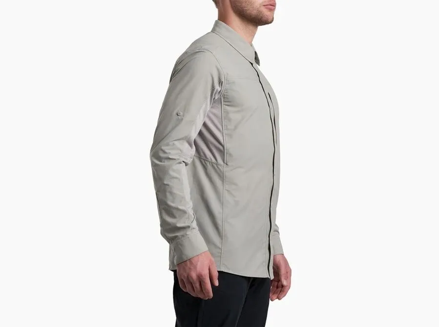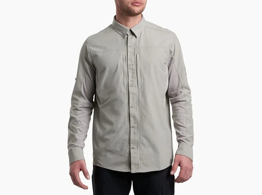 Kuhl Airspeed Mens Long Sleeve Shirt is a one-of-a-kind performance. Merging a mesh, knit, and woven to deliver the very best in the sun (UPF 30+) protective, warm weather comfort.
