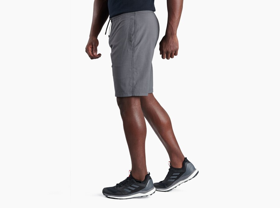 The Kuhl Kruiser Men's Shorts 8 Inch Length are ideal for summer activities. These shorts are constructed from a nylon performance-blend fabric that incorporates stretch to ensure freedom of movement. The ultra-lightweight design provides a cool feel next to the skin, while the textured fabric aids in quick evaporation and drying. They also offer excellent sun protection with UPF 50+.