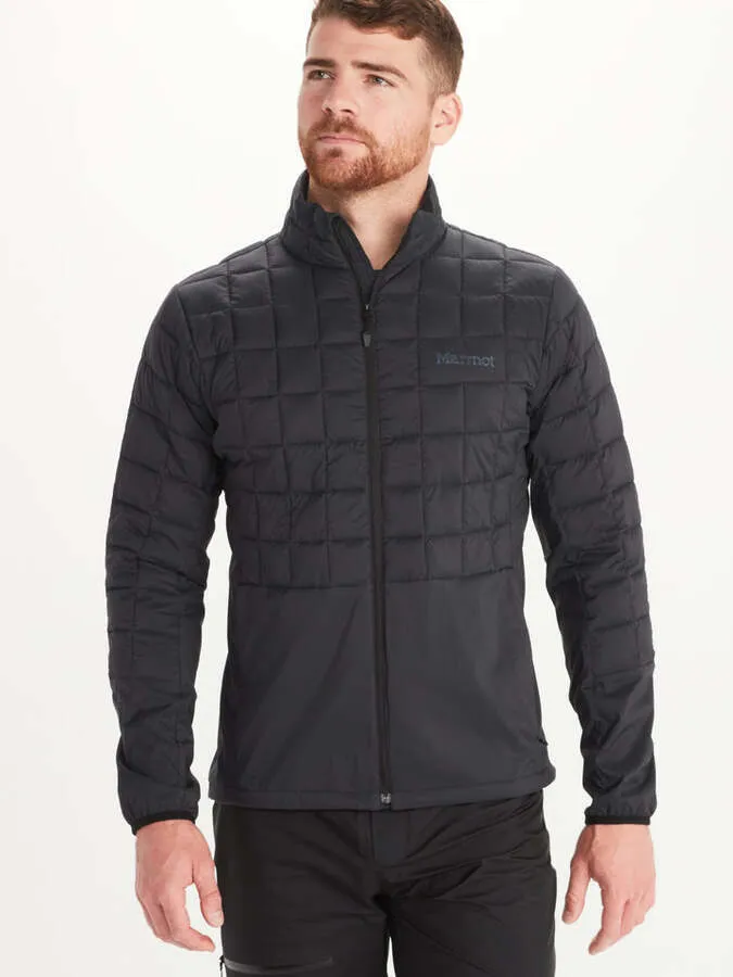 The Marmot Echo Featherless Hybrid Men's Jacket is tailored for outdoor enthusiasts seeking both warmth and mobility. It features 3M Thinsulate Featherless insulation made from 75% recycled material, which provides warmth comparable to 700 fill power down but performs better in wet conditions. The jacket's DriClime lining efficiently wicks moisture, keeping you dry and comfortable. It's crafted from recycled 30 denier nylon, making it lightweight and suitable for layering without adding bulk.