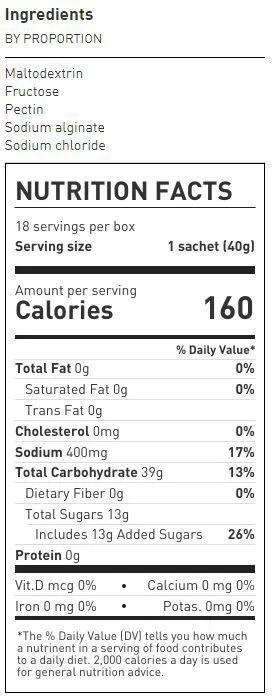 Ingredients : Maltodextrin, fructose, pectin, sodium alginate, sodium chloride