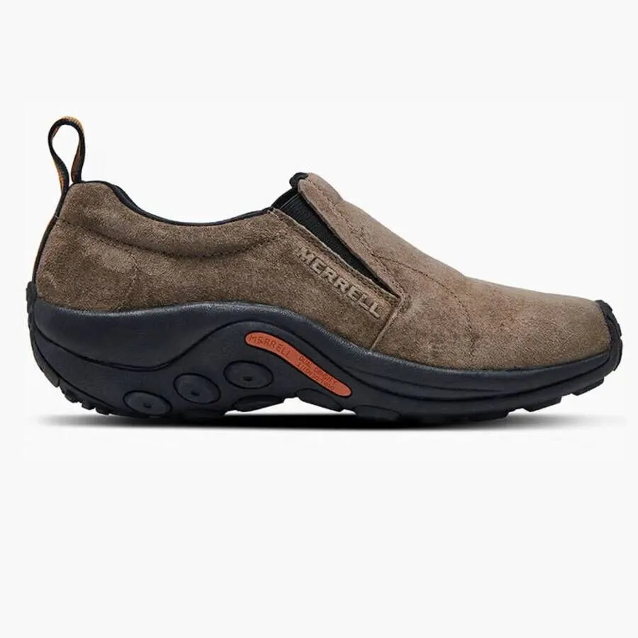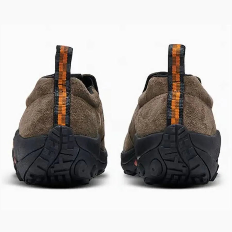 The Merrell Jungle Moc Wide Men’s Shoes are a perfect blend of comfort and durability, designed for those seeking a versatile and easy-to-wear shoe. Crafted with a suede leather upper that provides a sleek, classic look while offering water resistance, the iconic Jungle Moc shoes are ideal for relaxing after a long day on the trail or even for everyday use and light outdoor activities. The stretch panels ensure a snug, comfortable fit and allow effortless slip-on and slip-off, while the breathable mesh lining enhances ventilation. Inside, the NXT lined footbed fights odours, keeping your feet fresh throughout the day. The shoe features an EVA foam midsole for excellent cushioning and shock absorption, complemented by the Merrell Air Cushion in the heel for extra stability. The M Select Grip outsole offers superior traction on various surfaces, with a 3mm lug depth that provides reliable grip and durability. Additionally, the recycled footbed and footbed cover make this shoe a sustainable choice for the environmentally conscious.