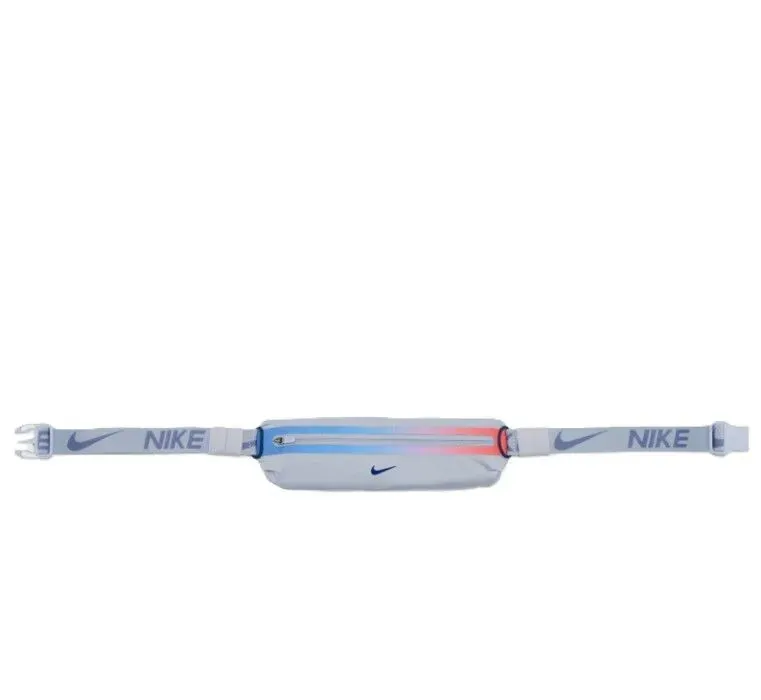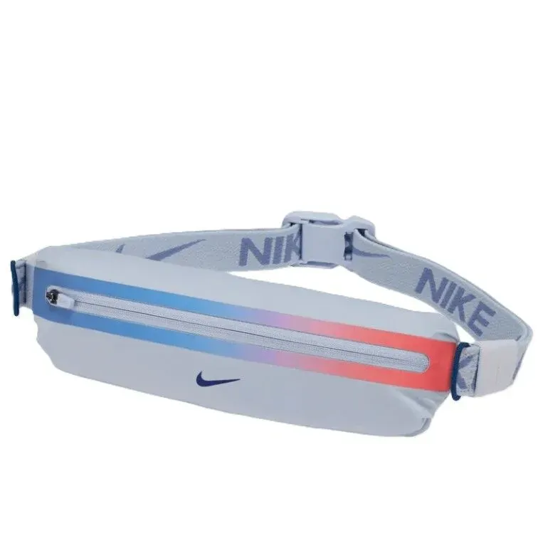 The Nike Slim Waistpack 4.0 features an adjustable stretchy belt that fits securely and comfortably as you run. With an expandable pocket that holds your small essentials, a jacquard branded strap, and an easy single-button closure on belt. The design is contoured and lightweight for comfort and less bouncing.