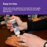 High performance waterproofer designed to maintain grip and breathability of fabric and leather gloves.