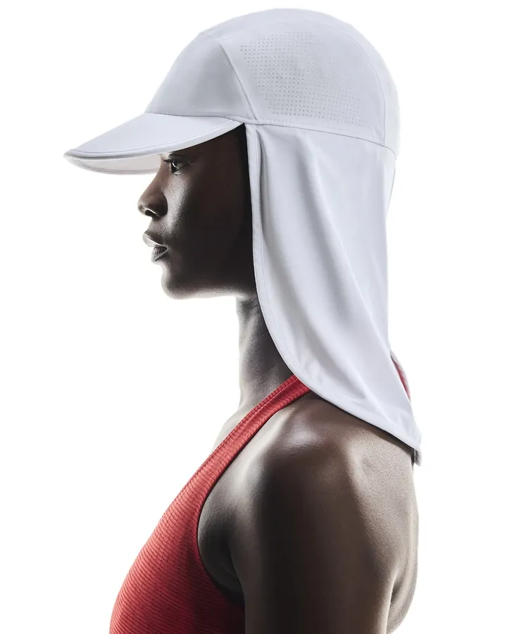 This ultra-lightweight running cap provides UV protection (UPF50+) in searing sunshine. It's breathable and sweat-wicking with a branded front panel, while reflective drape hood and side panels offer low-light coverage and visibility.