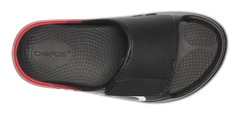 Reinvigorate your feet post-workout with recovery slides that support their health and comfort, featuring luxurious OOFoam technology and an arch-cradling patented footbed.