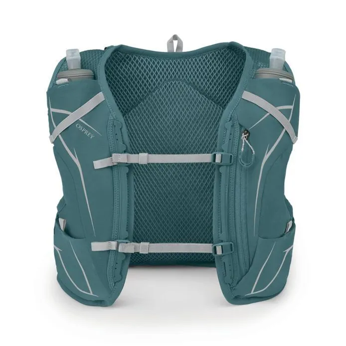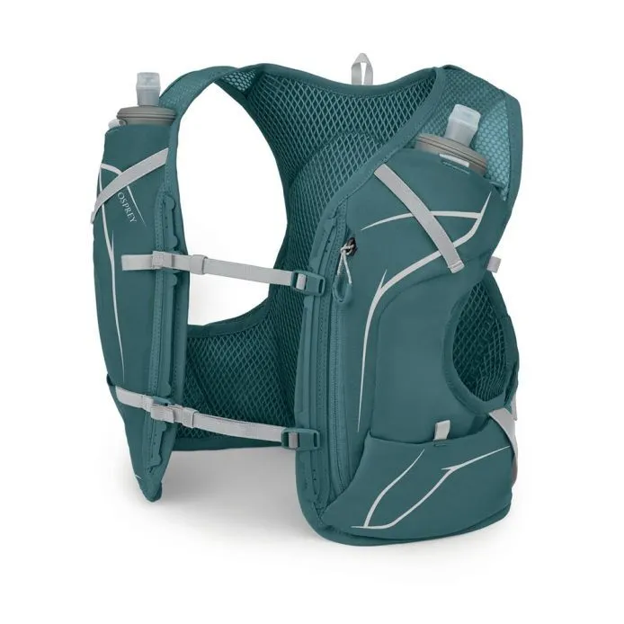 The Osprey Dyna 1.5 Womens Pack with Flasks is a premium, women-specific hydration solution built for runners and endurance athletes who demand performance, comfort, and streamlined functionality. Designed with long-distance running in mind, this ultra-light pack offers a bounce-free fit with tailored ergonomics, ensuring that the load remains stable mile after mile. The vest-style harness includes padded mesh straps and a 3D spacermesh bodywrap backpanel, creating a breathable and chafe-free interface even in high-output scenarios. With ample room for fuel, fluids, and essentials, the Dyna 1.5 combines minimalist weight with maximum utility, empowering athletes to push boundaries without sacrificing convenience or comfort. Two Hydraulics 500mL flasks are included, complemented by dual front flask pockets and additional storage options strategically placed for accessibility. Crafted with recycled materials and treated with Durable Water Repellent (DWR) finish free of perfluorinated chemicals (PFC) free/per- and polyfluoroalkyl substances (PFAS), this pack also aligns with sustainable values while excelling in performance.