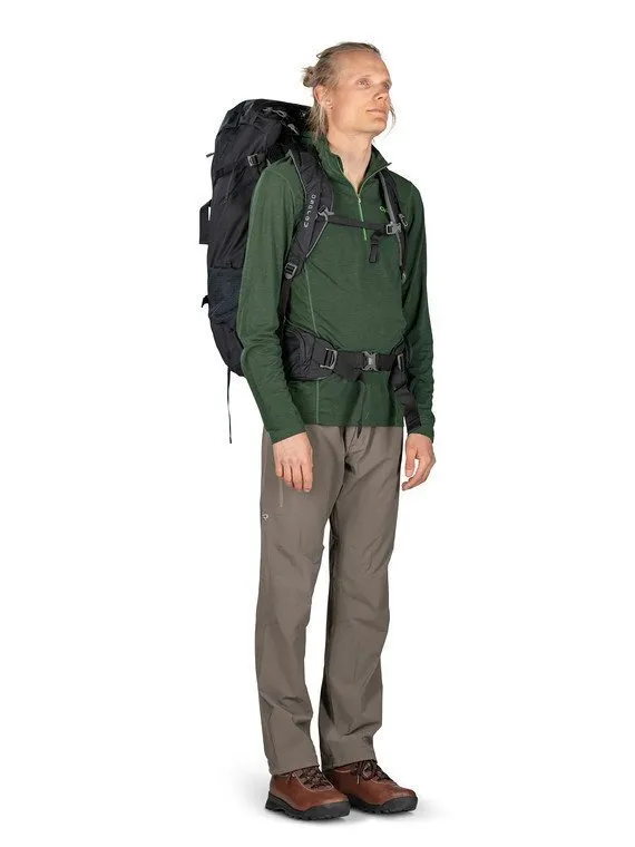 The Osprey Farpoint Trek 55 men’s pack combines travelling and hiking backpacks. Featuring plenty of storage space and compression straps to fit everything you need on a backpacking trip or a multi-day hike. A Stowable AirCover and a multi-function sleeve, for a water reservoir or laptop, come in handy on the trek and in hostels. The super comfortable AirSpeed suspension system takes the load off of your shoulders and increases comfort on long hikes.