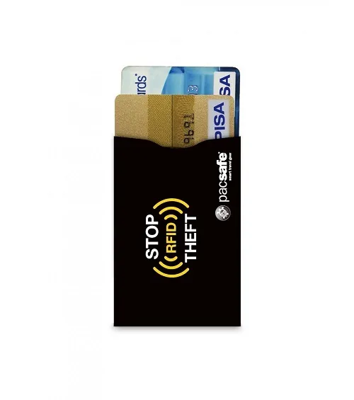 The Pacsafe RFID Sleeve 25 RFID-Blocking Credit Card Sleeve 2 Pack features: