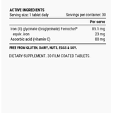 IRON ADVANCED + C provides a highly bioavailable form of iron combined with vitamin C to support healthy blood function, energy production, and oxygen transport. Formulated using advanced iron bisglycinate chelate (Ferrochel), this gentle, well-tolerated iron supports the nutritional needs of active and high-performance individuals.