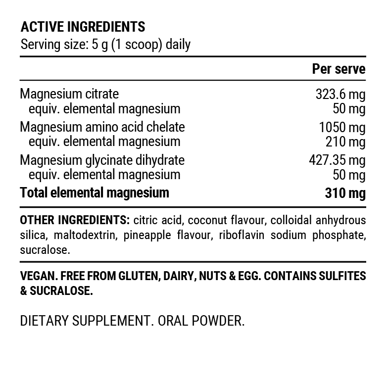 TRIPLE MAGNESIUM Powder combines pineapple and coconut extracts to deliver a refreshing, balanced flavour without compromising on ingredient quality. If you enjoy a piña colada, you will love our Pineapple Coconut flavour.