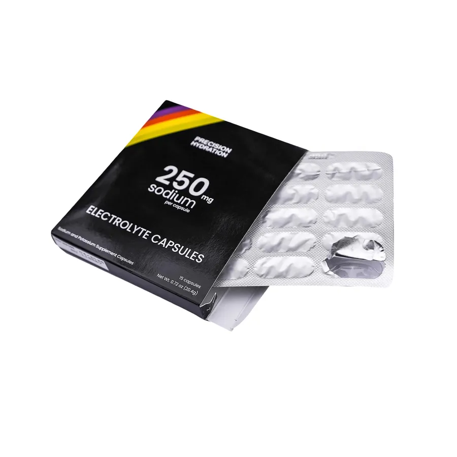The blister-packed capsules are ideal when you're relying on water from feed stations at events, if mixing up drinks during your longer activities isn't practical, or if you prefer plain water to even the mildest of sports drinks. They're also useful for topping up the electrolyte content of other drinks. 15 capsules per box, 250mg of sodium per capsule. Swallow with water.