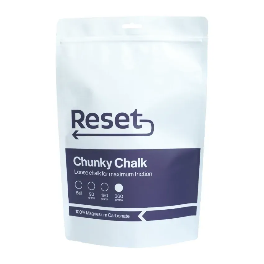 Say goodbye to the sweats and hello to solid sends. Reset Chunky Chalk is 100% pure magnesium carbonate - no fillers, no fluff, just the good stuff to keep your hands dry and your grip strong.