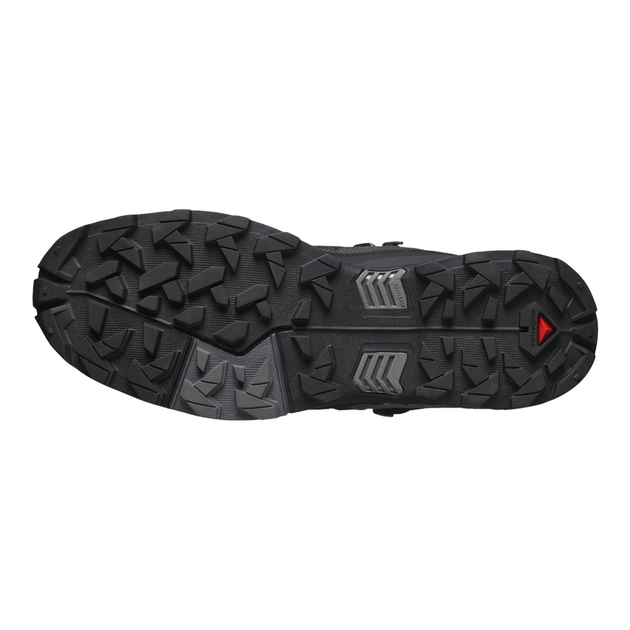 The Salomon X Ultra 5 Mid GTX Mens Shoes are your ultimate hiking companion, built to tackle challenging terrain with confidence. Whether you're powering up steep climbs or navigating tricky descents, these hiking shoes keep you agile, stable and protected every step of the way. With a mid cut profile, ankle support is a key focus, helping reduce your risk of injury on uneven terrain. Pairing a 440g weight (size 9 USM) with an 11mm drop, they provide reliable protection against trail debris and the elements. Featuring an ultra-durable Matryx upper with individually-coated Kevlar yarns that are resistant to tearing and abrasions, this hiking shoe offers long-lasting support while keeping each stride feeling light and airy. With GORE-TEX waterproofing, your feet stay dry without overheating, allowing you to transition easily between the seasons. Complete with a soft, contoured collar and adventure-ready EnergyCell midsole that keeps you trekking without distractions, it’s your go-to for single-day hiking trips and for explorers that prioritise comfort. The Advanced Chassis combines a smooth balance of stability and freedom of movement, so you stay sure-footed on even the roughest trails. The Contagrip outsole delivers multi-terrain traction, meaning you’ll stay secure on wet and dry surfaces no matter what Mother Nature throws your way.