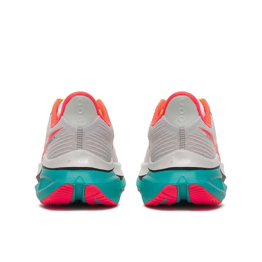 A lightweight, versatile race day shoe with a redesigned winged nylon plate, responsive PEBA-based cushioning, optimised outsole, and an improved breathable mesh, designed for smooth transitions and high-speed performance.